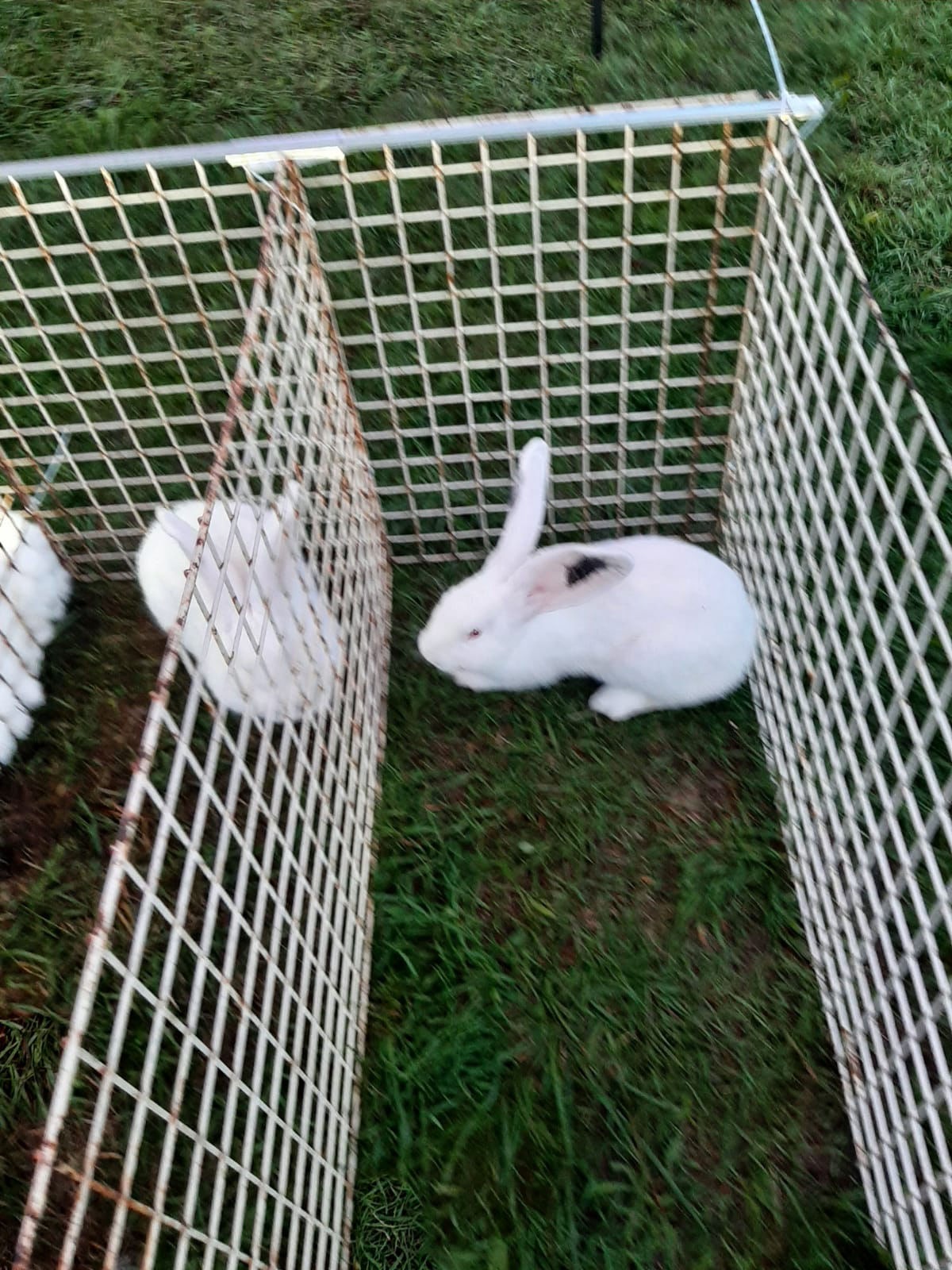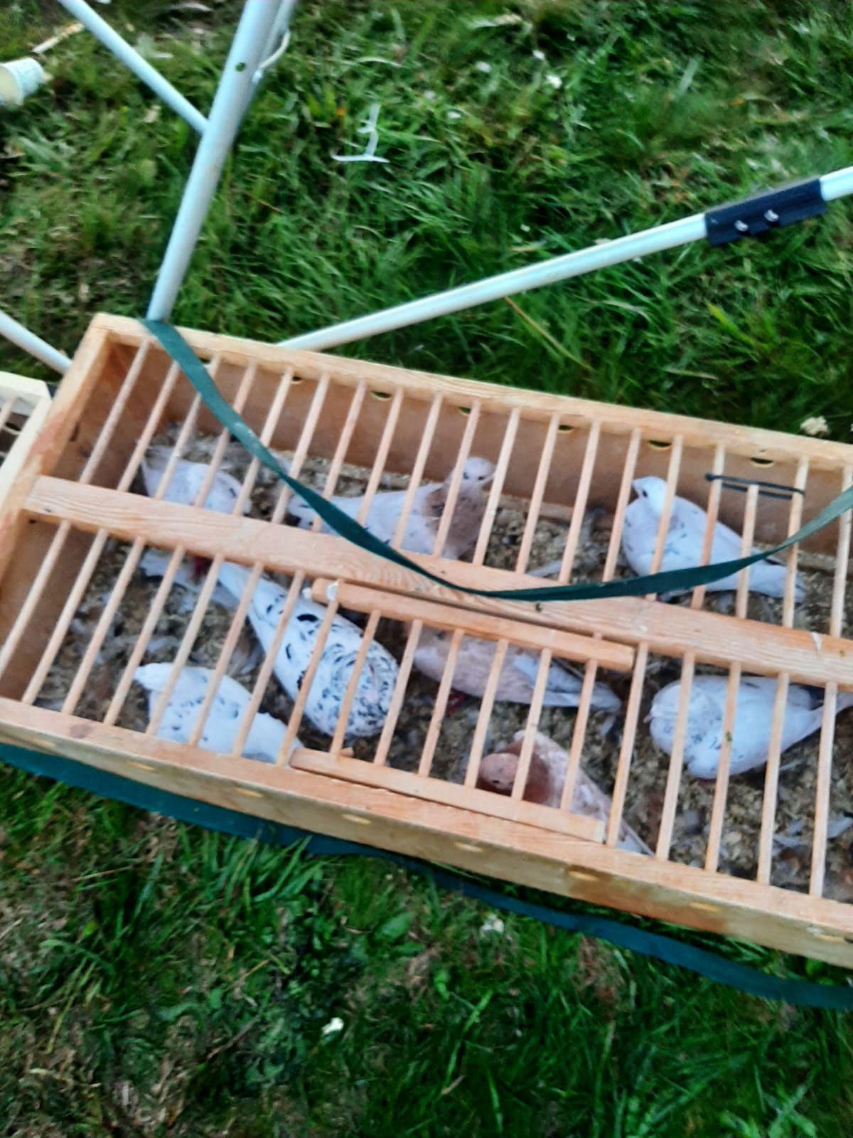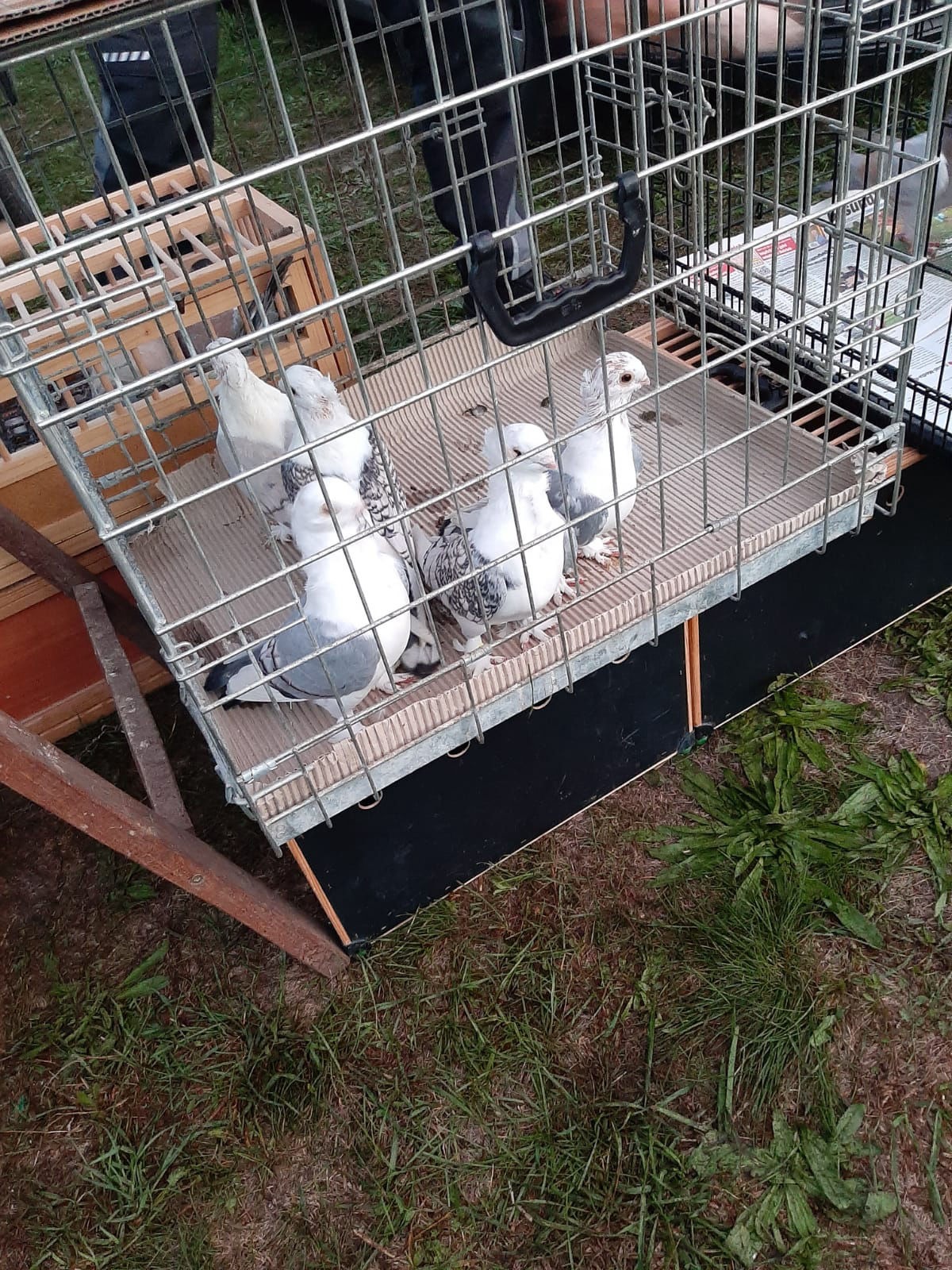 Die Zuchtfreunde Josef Hiergeist, Franz Hiergeist und Helmut Sachsenhauser besuchen Viola Dziuba in ihrer Zuchtanlage im Mai 2023